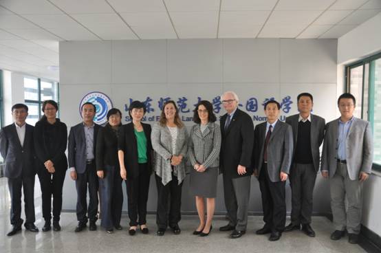 会谈正式开始前,学院为来宾播放了由学校国际交流与合作处制作的山东师范大学国际宣传片,对我校悠久的历史和丰富的文化底蕴做了立体化介绍。之后,王卓对费里斯州立大学一行的到访表示欢迎,并简要介绍了外国语学院的院系设置、师资等基本情况。费里斯州立大学国际学院主任丽莎▪冯▪芮克鲍尔介绍了费里斯州立大学的概况,文理学院院长和药学院院长分别介绍了两个学院的情况,然后双方就拟合作项目展开洽谈。王金娥就承接其夏季课程的具体要求和细节问题,以及进一步的师生交流合作模式与丽莎进行了深入探讨,尹弢对双方合作项目提出了许多建设性意见。最后,双方互赠礼品并合影留念。