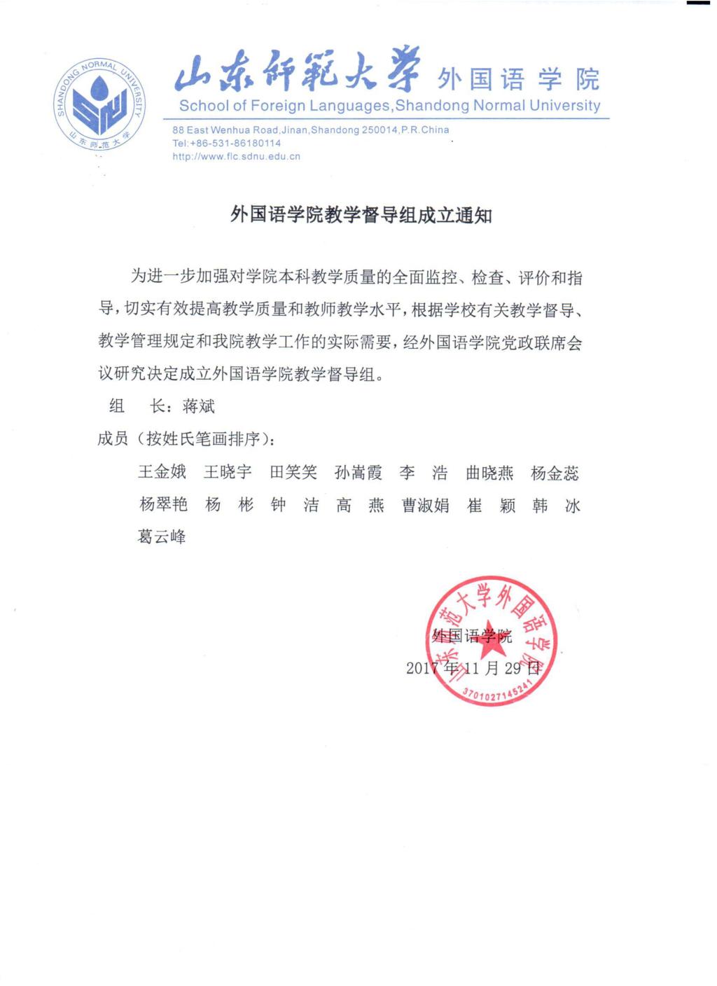外国语学院教学督导组成立通知