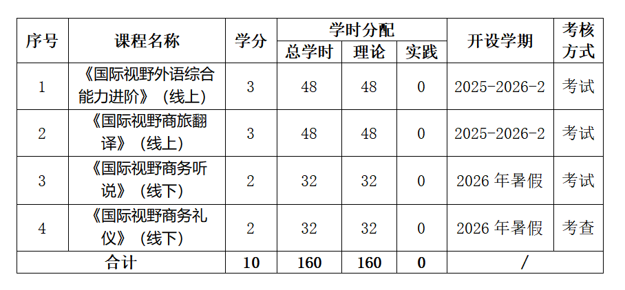 2.《国际视野商旅翻译》:本课程主要包括商旅翻译基础、国家语言与文化、商旅翻译实践及翻译技术与工具、案例分析与实践应用。旨在培养学生在国际商务旅行、跨文化商务交际及旅游翻译领域的双语实践能力。课程以“语言能力+商务知识+跨文化交际”为核心,聚焦商旅场景中的翻译技巧与文化适配,帮助学生掌握国际商务活动中的翻译规范,提升其在实际工作中的跨文化沟通能力与职业素养。