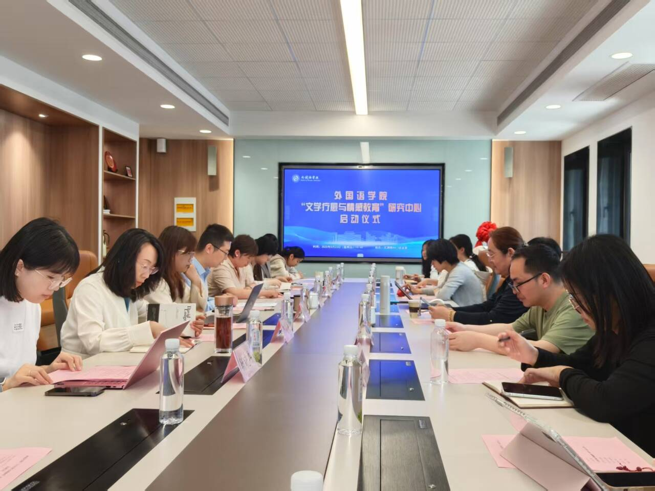 5月23日上午,外国语学院在长清湖校区文渊楼A座413会议室,成功举办“文学疗愈与情感教育”研究中心启动仪式,特邀山东大学外国语学院教授、博士生导师李保杰莅临指导论证。启动仪式由外国语学院副院长翟乃海主持,院长王卓为中心启动运转做重要部署,“文学疗愈与情感教育”研究中心主要成员及部分研究生参会。