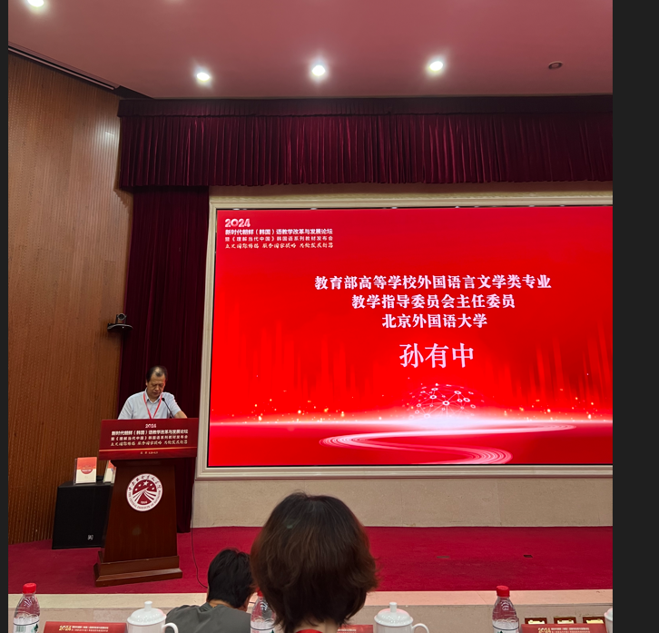 8月20日至21日,2024新时代朝鲜(韩国)语教学改革与发展论坛暨《理解当代中国》韩国语系列教材发布会在北京中央社会主义学院成功举办。本届论坛以“立足国际传播、服务国家战略、共绘发展新篇”为主题,由教育部高等学校外国语言文学类专业教学指导委员会、北京大学外国语学院、外语教学与研究出版社联合主办。会议共有全国的七十余位朝鲜(韩国)语教育专家、学者、一线教师参加,我院朝鲜语专业钟洁老师受邀参加本次会议,并于9月4日与我院朝鲜语专业老师们就会议的主要内容进行座谈。