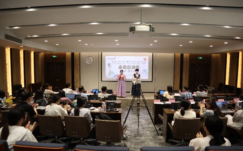 经过激烈的角逐,评委们根据选手们的语言表达、内容深度、现场应变等方面进行了公正评分并宣布比赛成绩,刘畅教授对比赛进行总结,并对参赛选手表示祝贺和感谢,第二届《中韩友好全国大学生韩语演讲比赛》全国总决赛全满结束。