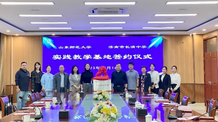 2023年10月16日下午4时,山东师范大学外国语学院与济南市长清中学实践教学基地签约揭牌仪式在济南市长清中学举行。