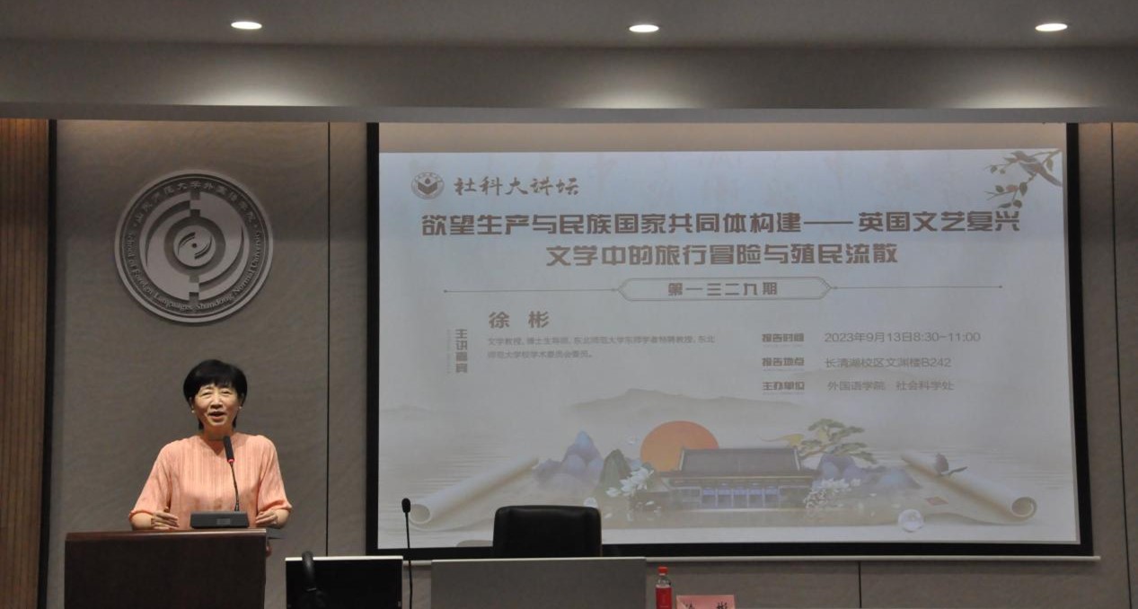 2023年9月13日上午,社科大讲坛——欲望产生与民族国家共同体构建——英国文艺复兴文学中的旅行冒险与殖民流散,在文渊楼B区242教室成功举办。本次论坛由山东师范大学外国语学院、社会科学处主办。主讲嘉宾为东北师范大学徐彬教授。论坛由王卓院长主持,出席此次论坛的有翟乃海教授以及全体研究生同学。