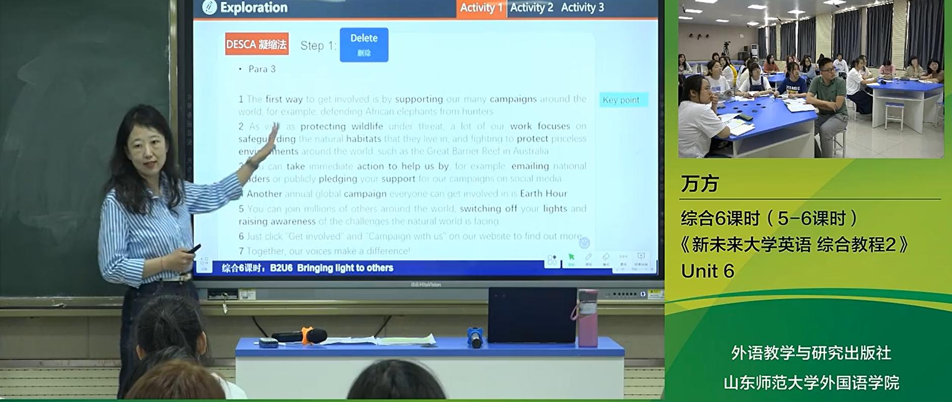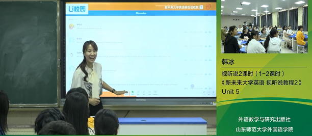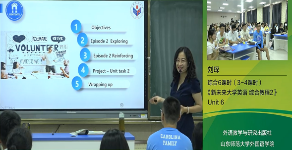23日至26日上午为开放周第二阶段,面向全国进行课堂教学直播。我院张虹老师、陈琳琳老师,刘琛老师、万方老师,韩冰老师分别呈现了《新未来大学英语》系列教材综合课程及视听说课程在不同的课型、不同课时的情境下的真实课堂教学情况,实时展现了我校大学英语课堂教学的实操方法,在真实课堂中带领观摩教师领略创新教学模式的优秀成果。开放课堂师生互动实时呈现,教学流程一目了然,参会教师得以直观充分地观摩教学设计和师生表现,在观摩中交流教学经验、学习教学设计。