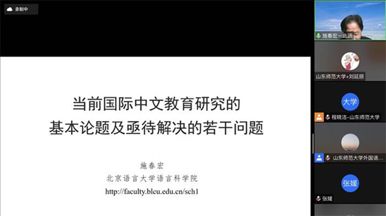 北京语言大学施春红教授做了题为“当前国际中文教育研究的基本论题及亟待解决的若干问题”的学术报告。施教授认为,学科和事业的关系问题一直是国际中文教育发展过程中需要面对的根本问题。“学科研究”应与“事业”的发展并重。施教授提出,国际中文教育应回归到语言教育的本质,以汉语言文字教学为根本,其他功能通过特殊的策略而在语言教学中实现。