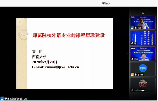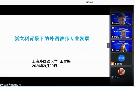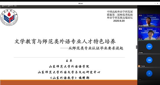 2020年9月20日,山东师范大学外国语学院成功举办“第二届师范类院校外语学科发展高端论坛”。本次论坛由中国高校外语学科发展联盟主办,山东师范大学外国语学院承办,上海外语教育出版社及《山东外语教学》编辑部协办。本次会议的主题是“新使命·新文科·大外语背景下师范类院校外语学科新发展”。此次会议旨在进一步推动我国师范类院校外语学科的发展。本次论坛共有11场专家主题发言,在腾讯会议平台举办,在B站进行了全程同步直播,共计1400多名专家学者、高校师生通过网络直播收看了会议。外国语学院所有班子成员、骨干教师、研究生和部分本科生参加了此次会议。