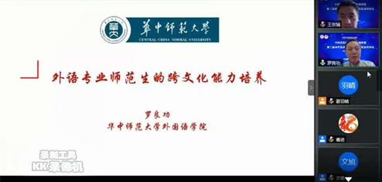 华中师范大学罗良功教授的报告题目是“外语专业本科人才跨文化能力的培养”。罗良功教授指出跨文化能力培养已经成为外语教育界的共识。首先,罗教授从跨文化能力的概念辨析入手,提出了自己对跨文化能力的理解,认为跨文化能力主要包括四个方面:跨文化情感能力、跨文化认知能力、跨文化交际能力和跨文化研究能力。然后,罗教授从三个方面说明了外语专业师范生要培养跨文化交际能力的重要性和必要性: 一是人类文明进步的需要;二是外语专业的内在要求;三是师范生的素质要求。最后,罗教授对于如何培养跨文化能力这一问题,分别从宏观、中观和微观三个层面提出了可行性办法,从宏观设计层面,罗教授提出要从培养理念入手,主张以教师的跨文化意识带动学生的跨文化意识,强调中外文化知识学习的平衡性和比较性和知识的系统性学习,加强人文素养提升,培养正确的价值观;从中观贯彻层面,罗教授提出,培养方案和课程设置要紧扣新国标和教学指南,培养模式要创新,如进行开放办学,扩大学习体验;从微观落实层面,罗教授聚焦于课程内容与教材教法,提出了五点要求,即课程的跨文化视野,课程内容的系统性,教学方法与教学任务的跨文化导向,以内容为基础的语言教学和能力导向的教学策略。