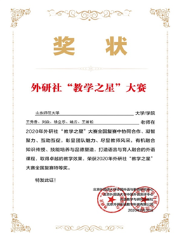 三尺讲台凝聚智慧之光,外国语学院教学团队通过大赛提升了教学能力,更加坚定了做学者型教师、在教学中不断提升综合素质的信念。学院将继续加大对优秀教学团队的培育,争取在全国总决赛及其他教学赛事中获得更好的成绩,更好的展示山东师范大学优秀教师的风貌。