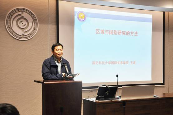 10月18日下午,外国语学院联合社会科学处主办的第850期社科大讲坛在长清湖校区文渊楼B区242同声传译教室举行。本次论坛特邀国防科技大学(南京)国际关系学院博士生导师、学科带头人王波教授作了题为“区域与国别研究方法”的学术报告。报告会由外国语学院副院长葛云锋主持,外国语学院副院长王金娥、学院部分教师、研究生和本科生160余人聆听了此次报告。
