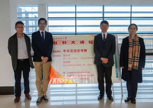 3月4日下午,日本青山学院大学教授、日本经济思想史学会秘书长落合功与日本明治大学商学部专任讲师、经济学博士恩田睦应邀做客我校第755期社科大讲坛,在长清湖校区文渊楼B区326教室为外国语学院日语系师生带来以“中日交流史考察”和“中日高速铁路比较”为主题的学术讲座。本次讲座由外国语学院日语系副教授孙守峰博士主持,我校日语系师生到场聆听。
