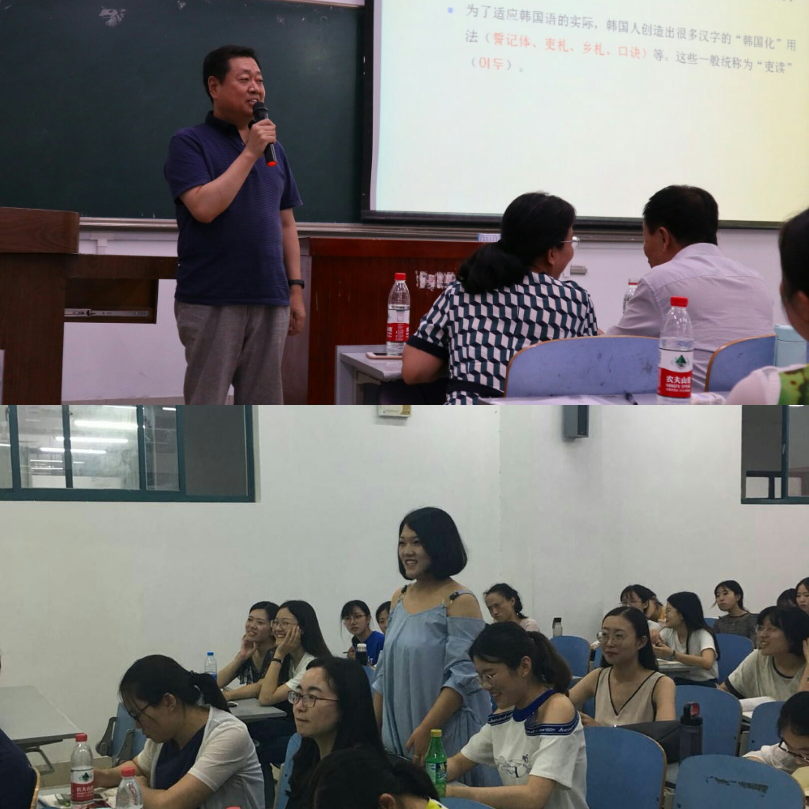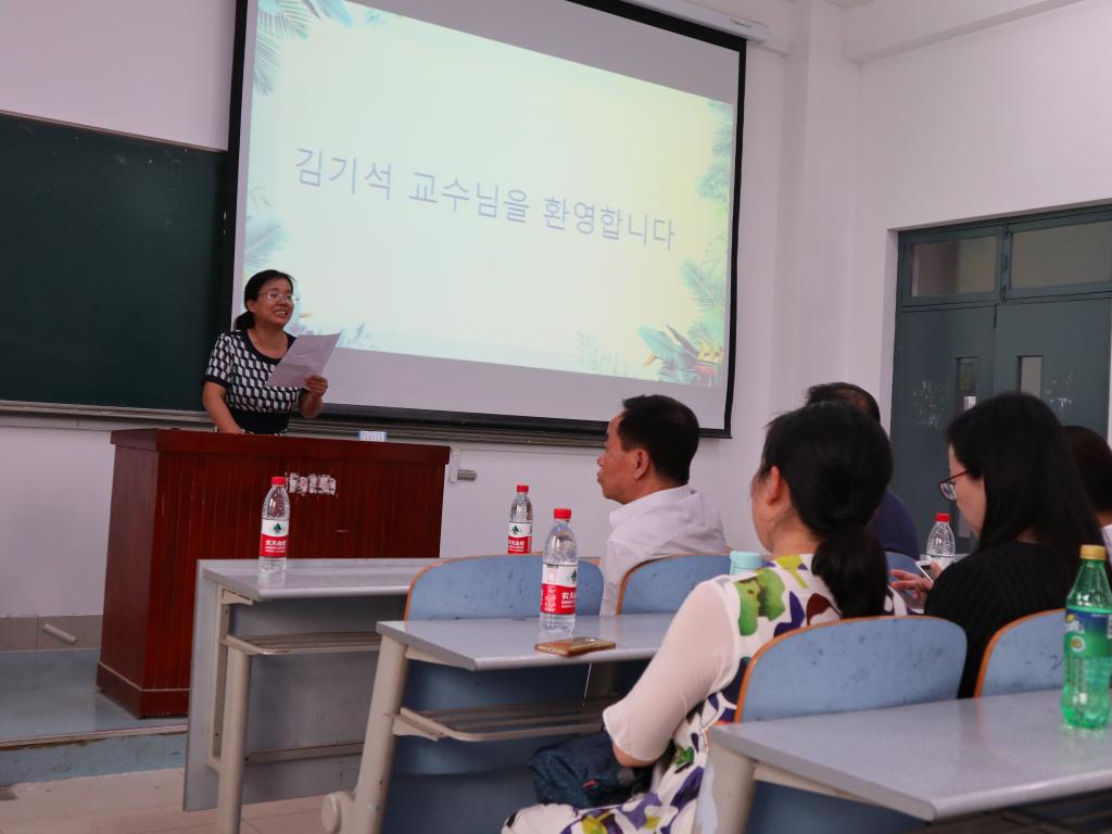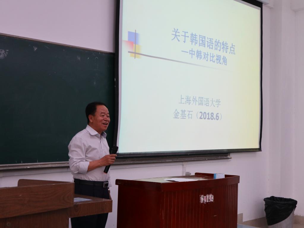 6月21日晚,外国语学院联合社会科学处主办的第672期社科大讲坛在长清湖校区B区教学二楼B233举行,本次讲坛特邀请上海外国语大学金基石教授作了题为“韩国语语言特点-中韩对比视角”的学术报告。报告由外国语学院东方语系钟洁老师主持,东方语系师生100余人聆听了本次报告。