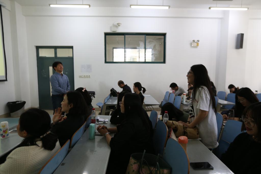 随后,韩成愚教授在介绍了中韩日食物的语言表达上的异同后,根据所列举的例子,总结升了本次报告。他提出中国文字在5000年源远流长的发展中,已经被韩国、日本等国家广泛的学习借鉴,并且和本国的实际相结合,产生了韩国语以及日本语中占有很重要地位的独特的“汉字词”。根据报告前半部分的探讨,韩教授提出韩语中也对汉语进行了独特的“制造”,那么是否可以说汉语是韩国的创作呢?这一问题又引发了广泛的讨论。最后韩教授总结到,今天并不是要探讨汉语的归属问题,而是给同学们提供开放包容的思考思路。钟洁老师在总结时强调,世界各民族语言都是在不断融合中发展的,作为语言学习者,要开拓视野,兼容并包。