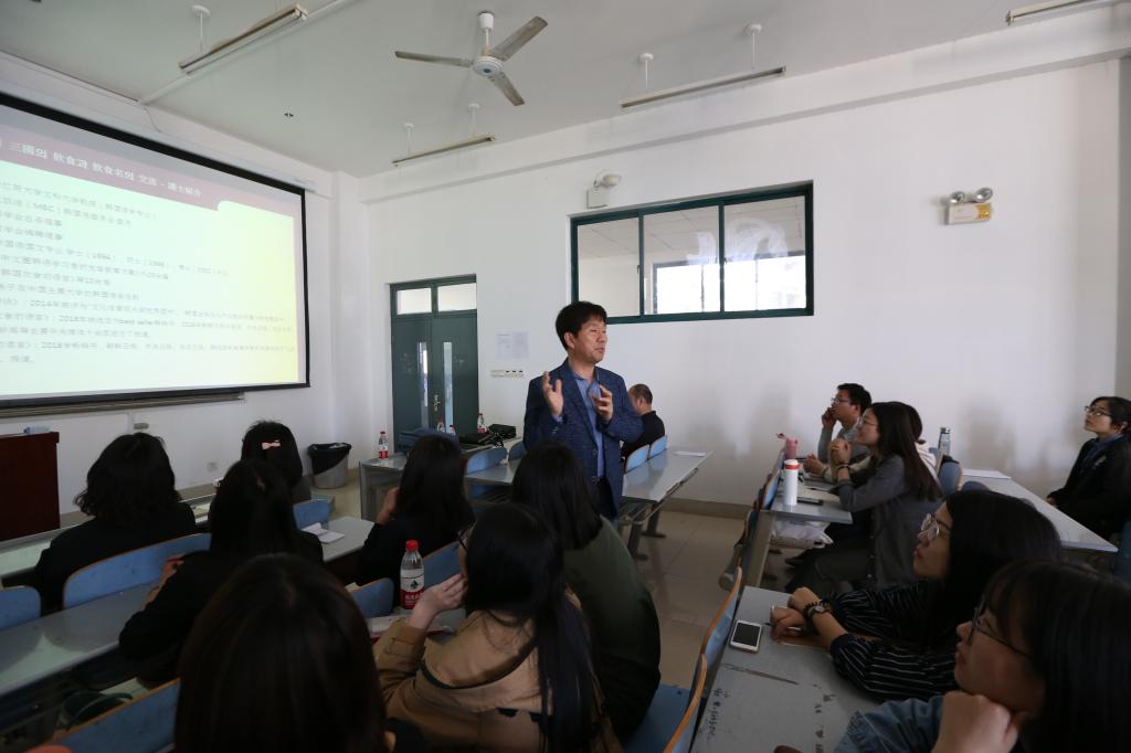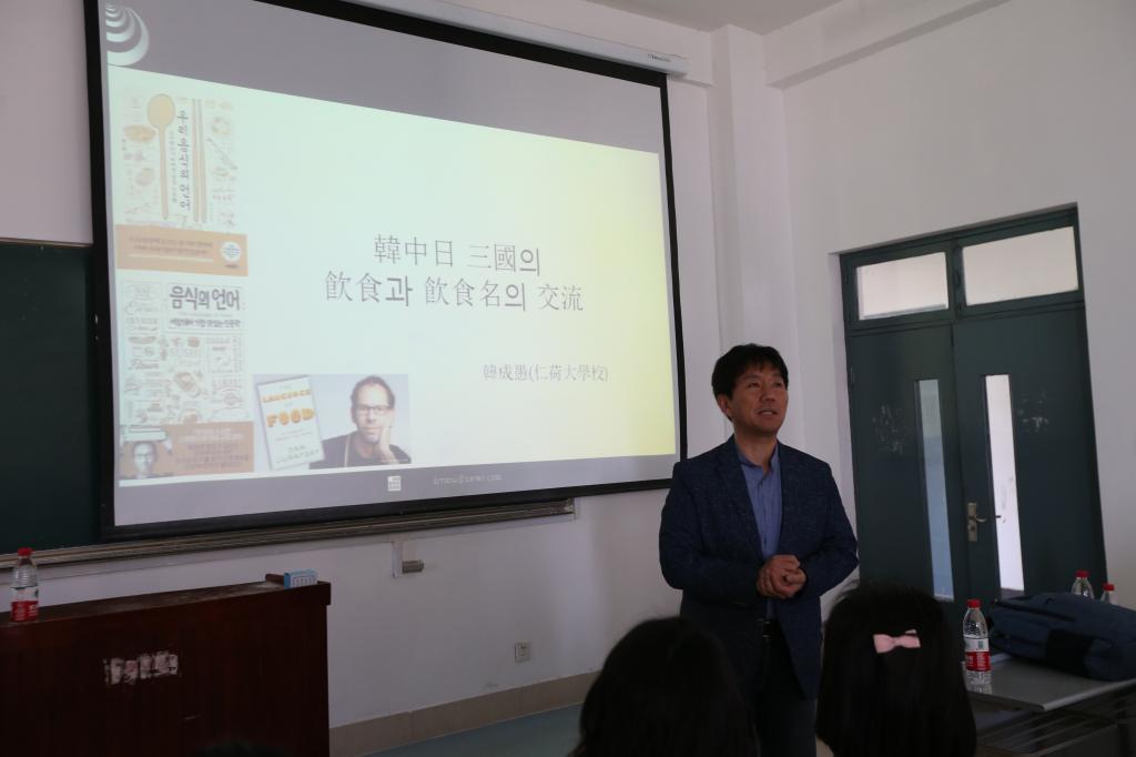 5月4日上午,外国语学院联合社会科学处主办的第637期社科大讲坛在长清湖校区B-234举行,本次讲坛特邀请韩国仁荷大学教授、韩国国语学会总务理事韩成愚教授,作了题为“中韩日饮食语言比较”的学术报告。报告由外国语学院韩语系钟洁老师主持,韩语系教师及本科生100余人聆听了本次报告。