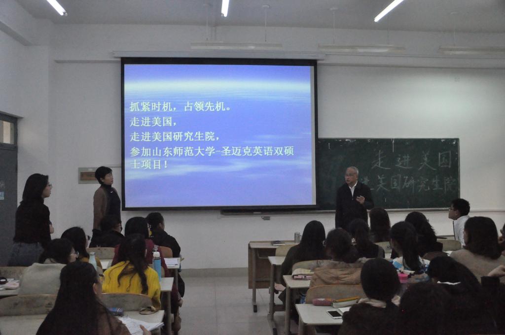 讲坛伊始,王卓院长向能在百忙之中做客讲坛的王觉非教授表示了感谢与欢迎,并对其进行了简单的介绍。在同学们热烈的掌声中,王觉非教授由此揭开了山东师大外国语学院与圣迈克学院联合培养的面纱。此次报告以漫谈的形式展开,大体由三部分组成。首先王教授向同学们展示了许多leyu·乐鱼(中国)官方网站美国的照片,从华盛顿纪念碑到艾森豪威尔大厦,从抗议示威人群到无家可归的流浪者,从亚特兰大的夕阳无限好到夏威夷宁静的海滩,王教授从多视角为大家呈现了真实的美国点滴。透过照片,王教授耐心地为大家讲述着照片背后的故事,揭示美国的社会现象。王教授生动的讲解令同学们对美国的生活充满向往,带着这份憧憬,报告进入第二环节,王教授开始开始了对美国研究生院的介绍。王觉非教授对比了中美在大学与文理学院上观念的差异,中国民众普遍认为“大学”才是优质教育的象征,然而在美国,规模较小的文理学院往往因其精华式教育受到大家的青睐。与此同时,王教授提醒同学们国外申请研究生院最容易忽视的环节,并强调了实践经验、创新意识对文科学生的重要性。在第三个部分中,王觉非教授向研究生们介绍了我校与圣迈克学院双硕士学位项目内容及其特色,对大家关心的问题给予了详实的解答。最后王教授寄语同学们在此项目上要占领先机。
