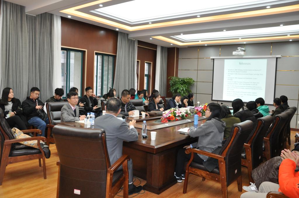 最后,田教授与在场师生亲切互动,耐心回答了师生提出的问题。田教授以其高屋建瓴的理论视角、明晰条理的思路、幽默风趣的语言、紧贴生活的语言实例给与会师生留下了深刻印象,启迪了大家的思维,扩展了学术视野。