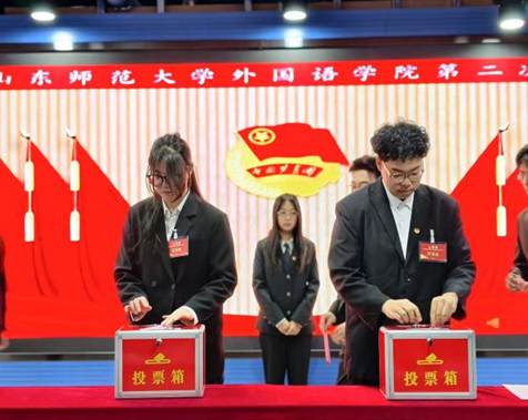 2025年11月27日下午,共青团山东师范大学外国语学院第二次团员代表大会于大学生创新孵化基地路演中心召开。学校团委副书记周勇,学院党委副书记、纪委书记司世牧,学院团委书记、学工办主任唐琨,外国语学院全体辅导员以及团员代表共100余人参加会议。