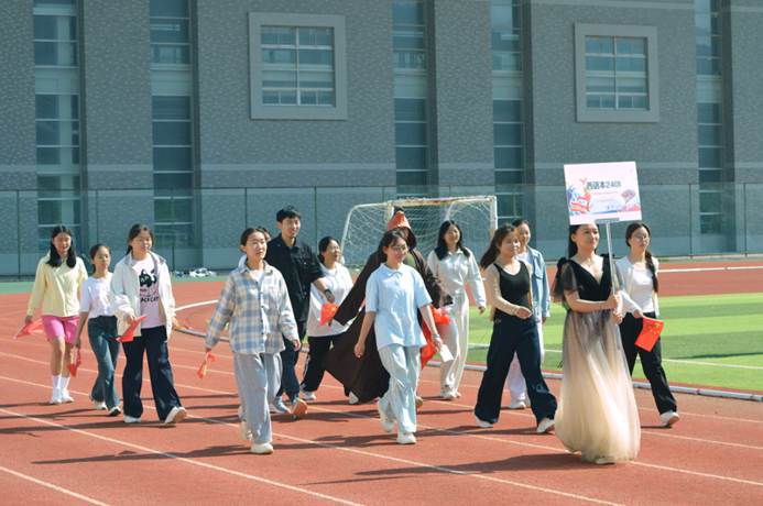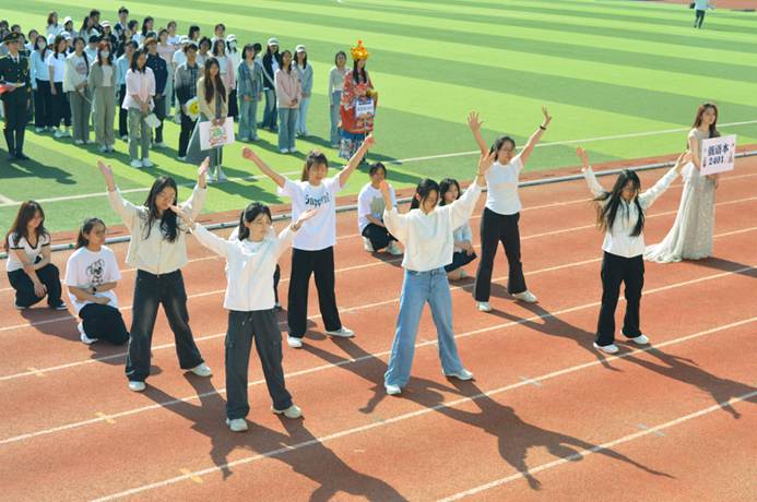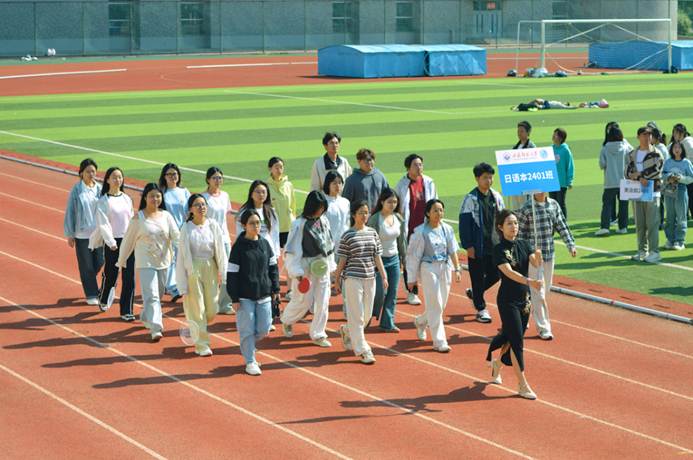 2025年5月11日上午,外国语学院2025年夏季运动会在长清湖校区田径场举行开幕仪式。外国语学院团委书记唐琨,22级辅导员庄识氐,22级辅导员邱琳,23级辅导员鹿璇,24级辅导员付晓朦,研究生辅导员李启迪,日语系外教老师松本彩花出席了本次活动。伴随着激昂的乐曲,各班级方阵依次入场——班旗猎猎,口号嘹亮,创意十足的表演点燃全场:动感舞蹈、斗牛表演、潮流合唱……外院学子以蓬勃朝气为运动会拉开精彩序幕!
